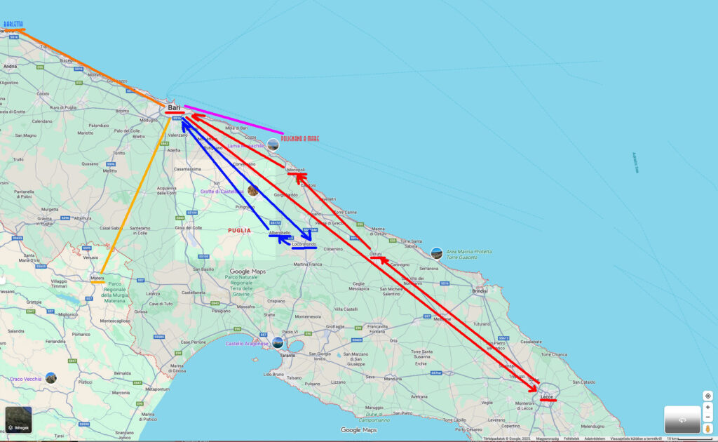 Utána jött a város kiválasztás, hol is lakjunk. A gép Bariban szállt le. Sokáig nézegettem a városokat, látnivalókat hogy mi fér bele ebbe 5-6 napba. Megvoltak a helyek, autót nem akartam bérelni – macerás hogy hol hagyjuk – a vonat és buszközlekedés meg elég jó arra, így Bariban a vasútállomáshoz közel foglaltam szállást. Igen, a Fireflies-nál megint, mint már majdnem 14 éve mindig. Ez nem is kérdés.