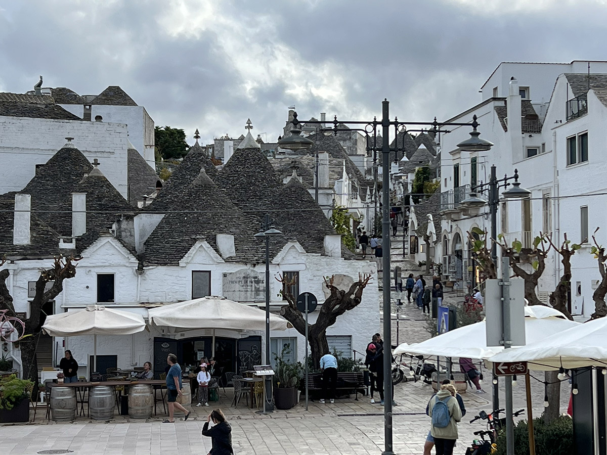 Jellegzetes épületeiről, a trullókról ismert. Ezek a kúp tetejű házak elmaradhatatlan jelképei a környéknek, a XIV. századi mezőgazdasági munkások számára jelentették az otthont. A házak különlegessége, hogy kőből, mindenféle kötőanyag nélkül épültek fel, tetejükre pedig furcsa szimbólumokat rajzoltak. A trullók direkt úgy épültek, hogy amilyen gyorsan fel lehet őket húzni, ugyanolyan gyorsan le is tudják bontani.