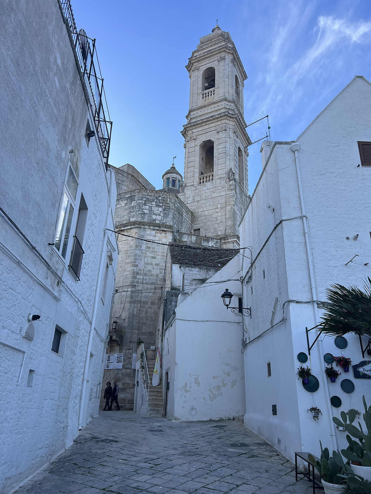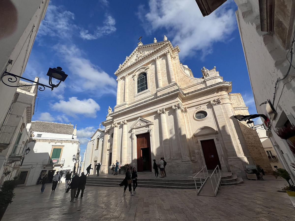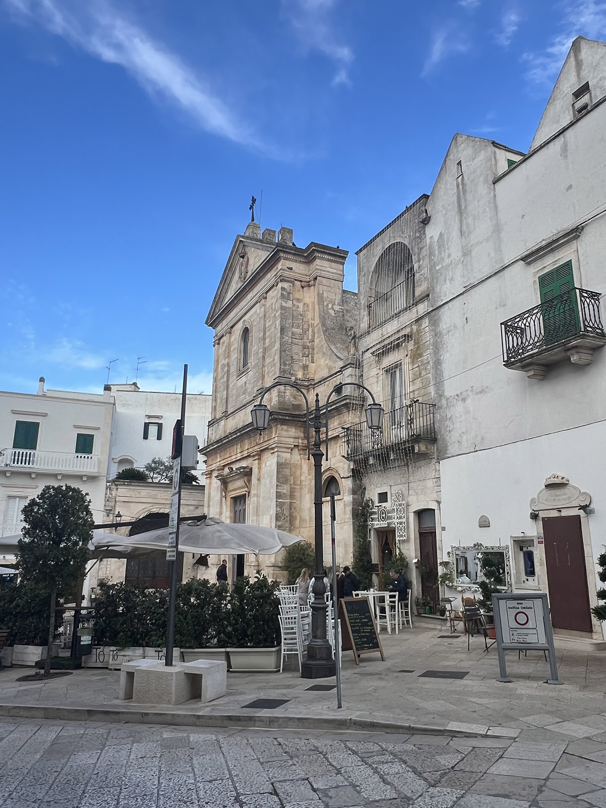 A szuggesztív Valle d’Itriaban található, ismertebb nevén a trulli völgyében. Száraz kövekből épült ferdetetős fehér házak jellemzik történelmi központját, amelyben a San Giorgio-templom, a VII-VIII. századi Madonna della Greca templom, az óratorony és a panorámás terasz található.