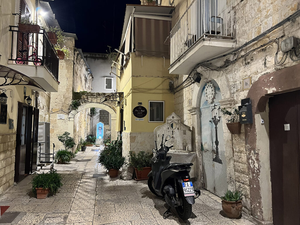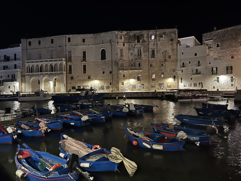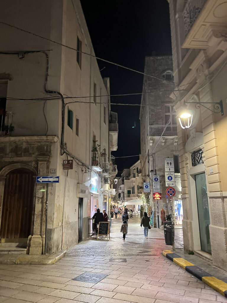 Fél óra vonattal Bariból. Tengerparti kis település. Ne hagyjuk ki, egy esti séta még a nap végére belefért nekünk is. Azért a lépésszámláló bőven 20.000 felett volt a nap végére. Nyáron a nagy forróságban ez nem biztos hogy teljesíthető lett volna.