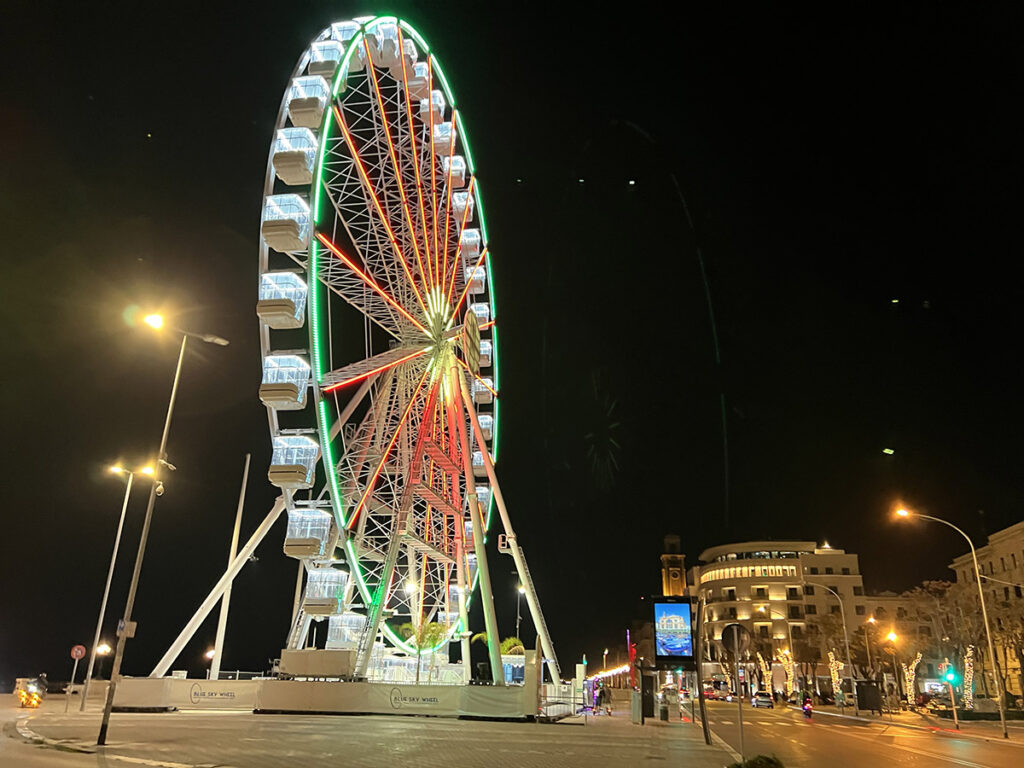 A reptérről vonattal mentünk a vasútállomásra, majd onnan gyalog a szállásunkra. Talán 5 percre laktunk. Ezzel sok időt nyertünk, mert legtöbbször vonattal mentünk még délebbre. És innét a városközpont és a buszpályaudvar sem volt messze. Este bementünk a tengerparti részre. 17 óra körül értünk oda, így már csak egy kis városnézésre volt idő és vacsorára.