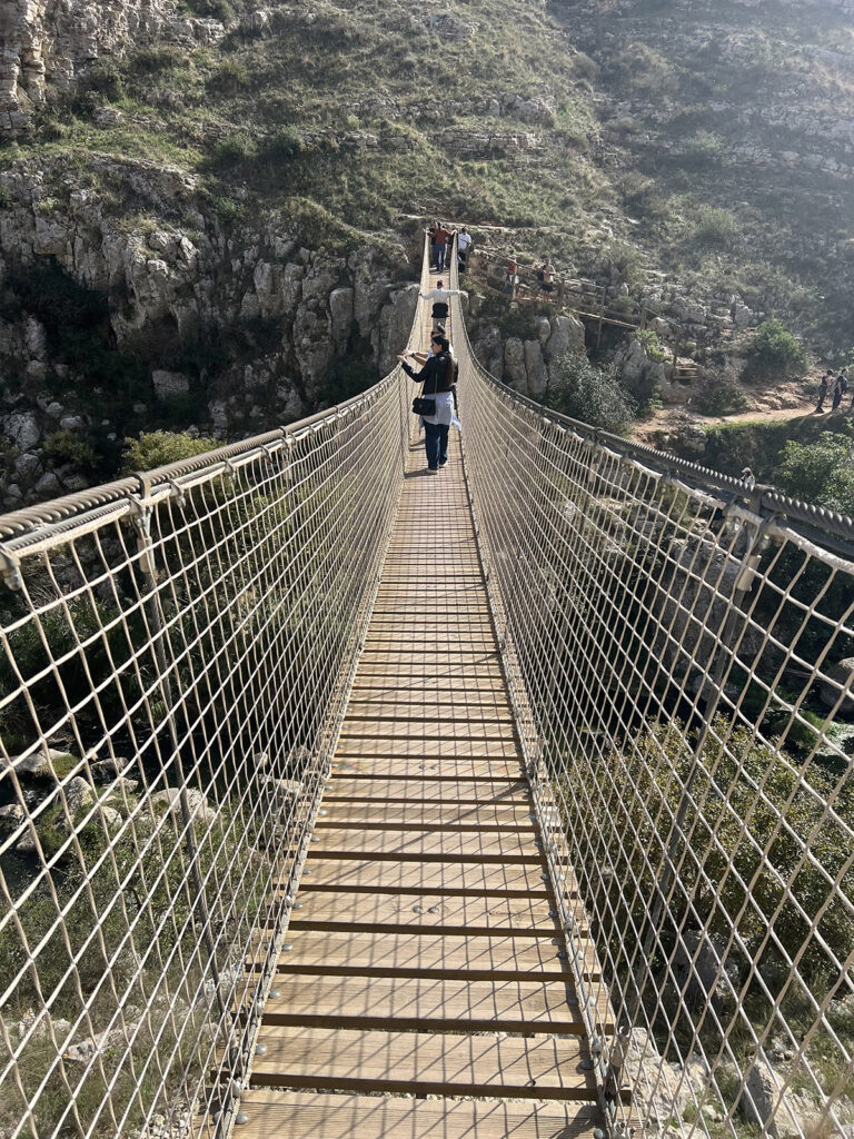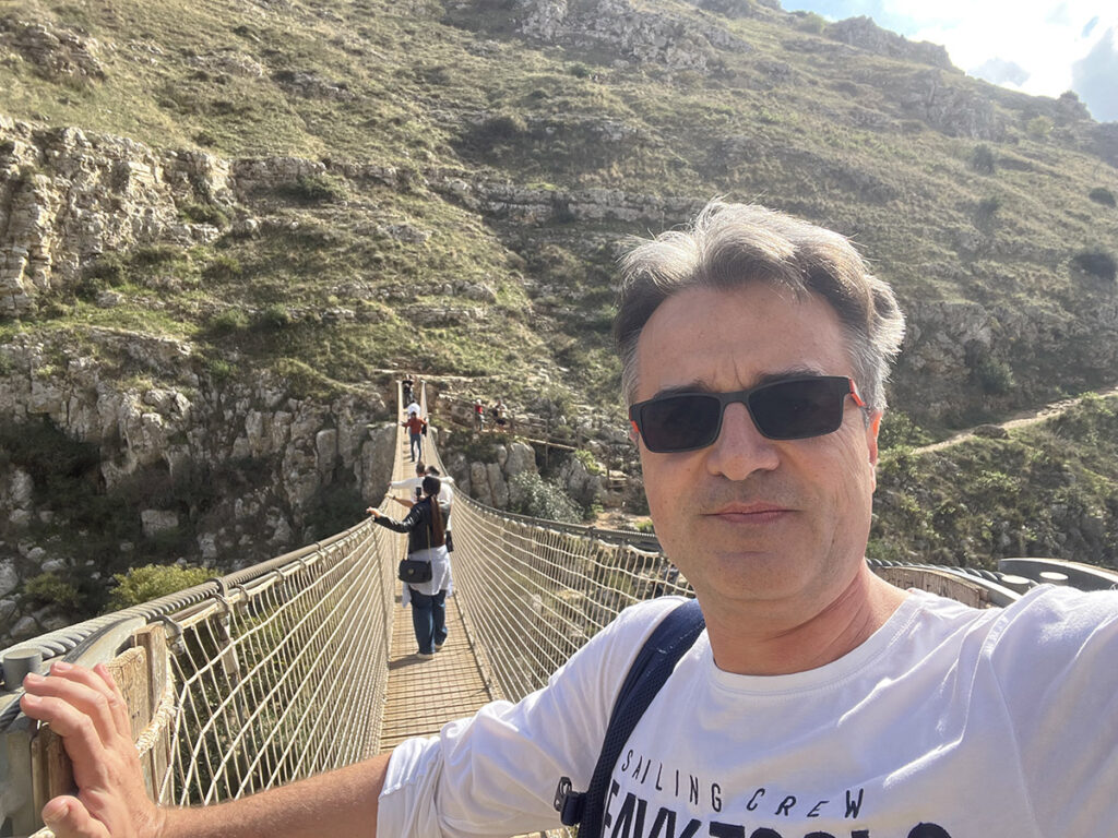 Útunk másik fontos fénypontja ez a település. Mindenképp ide is látogassunk el. Itt a napi számlátó is inkább 30.000 volt mint kevesebb… A völgybe érdemes elkirándulni, átmenni a függőhídon és fel a túloldalra. Akinek ez nem vonzó, bevallom hogy edzettnek kell lenni hozzá, az mondhatja a csapatnak aki nekiindul, hogy megvárja őket inkább egy Aperol Spitz vagy egy bor vagy sör mellett a kiindulóponton. Majd a lejárattól ha a völgy felé néz és jobbra kimegy a térre, felszállhat a piros buszok egyikére. Az pont felvisz a völgy másik felére. És mire a csapat oda átér, tuti hulla fáradtak lesznek. És jó nagy meglepetés is lehet, ha pl a busz gyorsan megy és ti kipihenten mentek a csapattal szemben.. de pssszzzt… Mi gyalogoltunk, bevallom kinyuvadtam, és a függőhíd is összevissza mozog. Igen, visszafelé is a nyavajás. De szép képeket csináltam útközben, ez kárpótolt 🙂